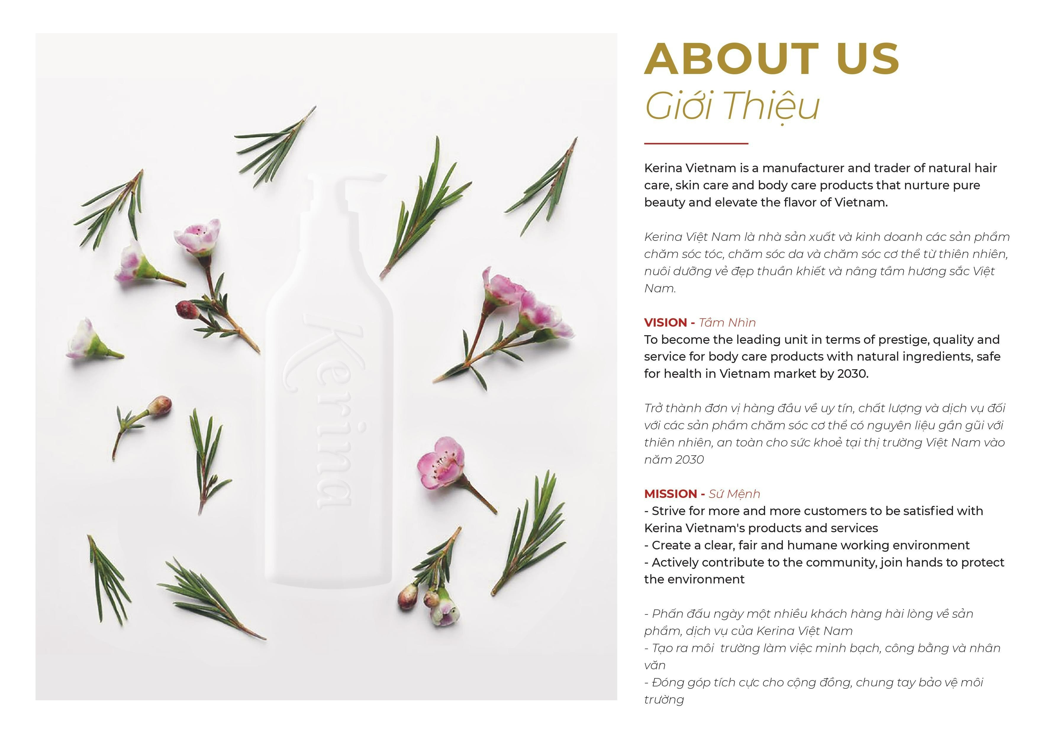 Hi vọng cùng với thời gian, những sản phẩm của Kerina Việt Nam với nguyên liệu gần gũi với thiên nhiên , an toàn cho sức khoẻ sẽ cùng đồng hành trong hành trình giữ gìn vẻ đẹp của Bạn, theo cách tự nhiên nhất.