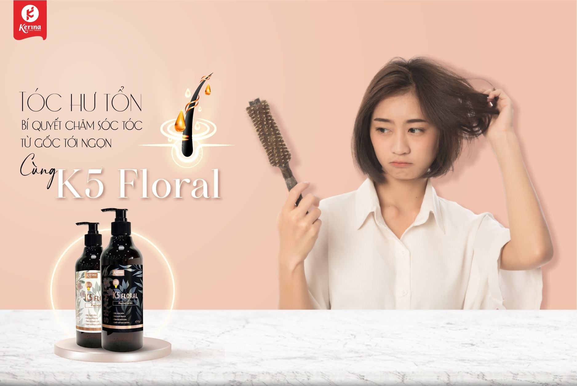 Tóc hư tổn, khô xơ, thiếu sức sống… chỉ cần combo dầu gội & dầu xả K5 Floral là đủ. Bạn sẽ cảm nhận sự khác biệt ngay lần đầu sử dụng.