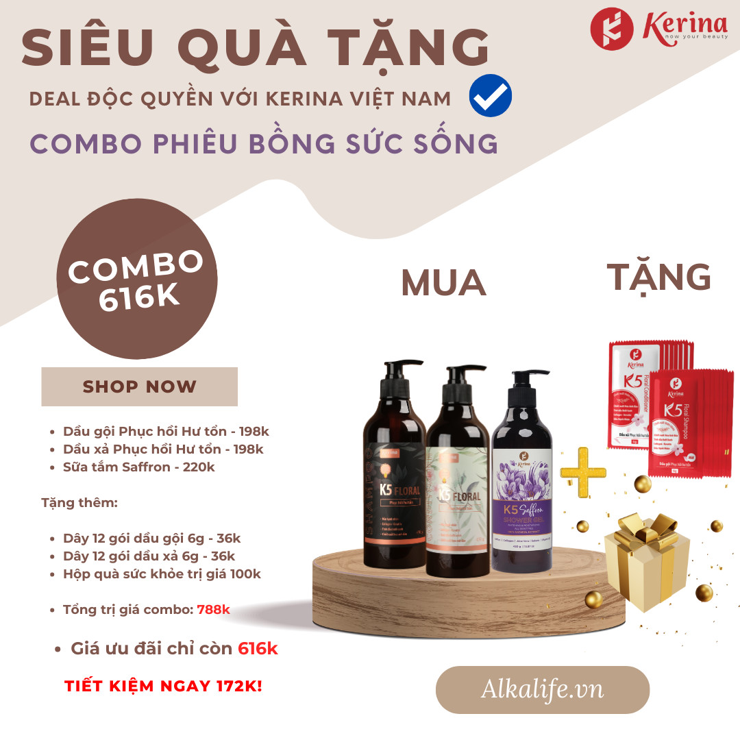 COMBO QUÀ TẶNG DẦU GỘI XẢ PHỤC HỒI HƯ TỔN KERINA