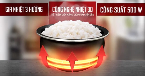 Công nghệ nhiệt 3D giúp cơm chín đều và nhanh hơn.