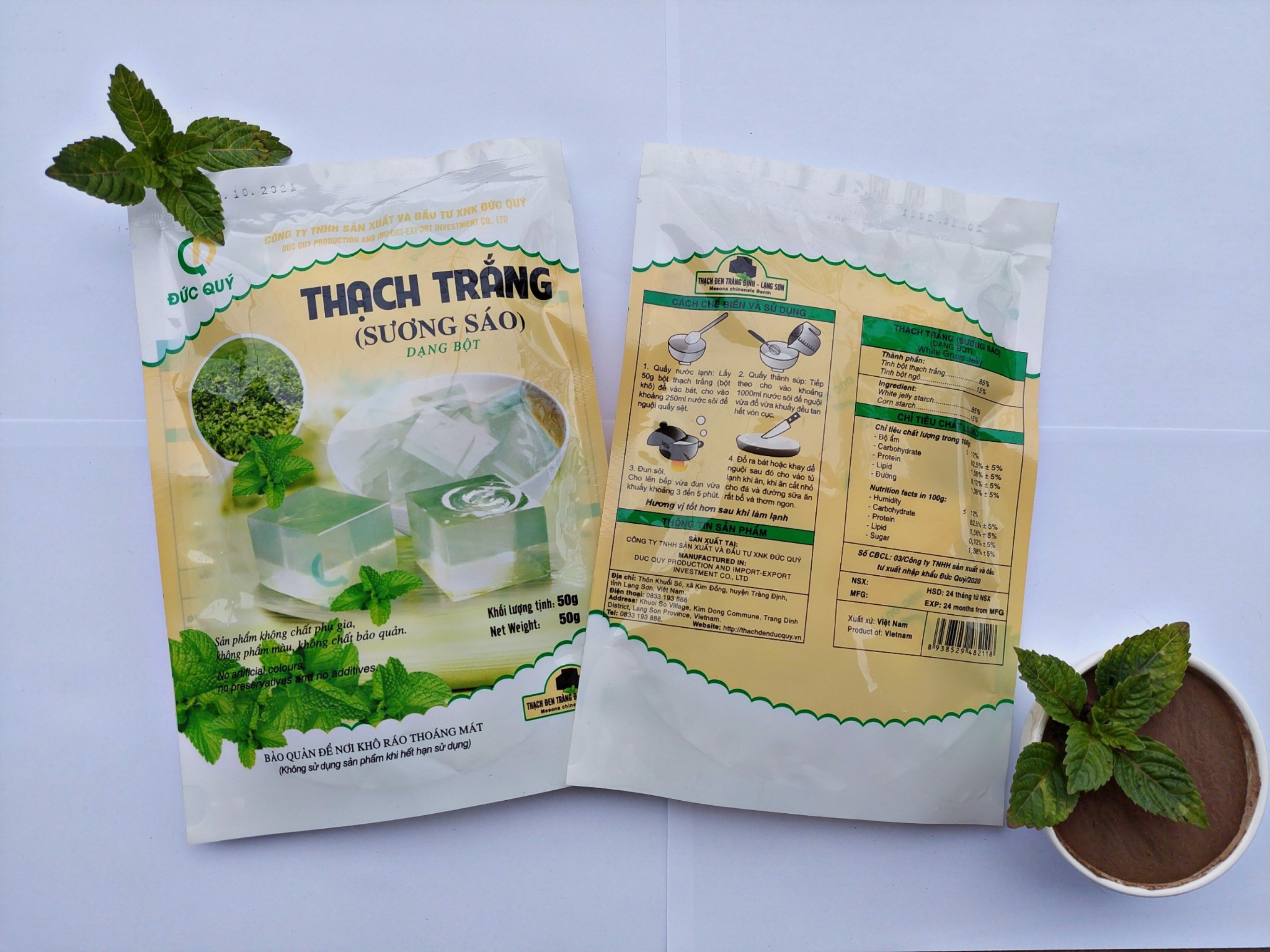- Bột Thạch đen Đức Quý được làm hoàn toàn từ cây thạch đen phơi khô (trừ phần rễ), không chứa chất phụ gia, chất tạo màu, đạt tiêu chuẩn Vệ sinh an toàn thực phẩm (VSATTP).