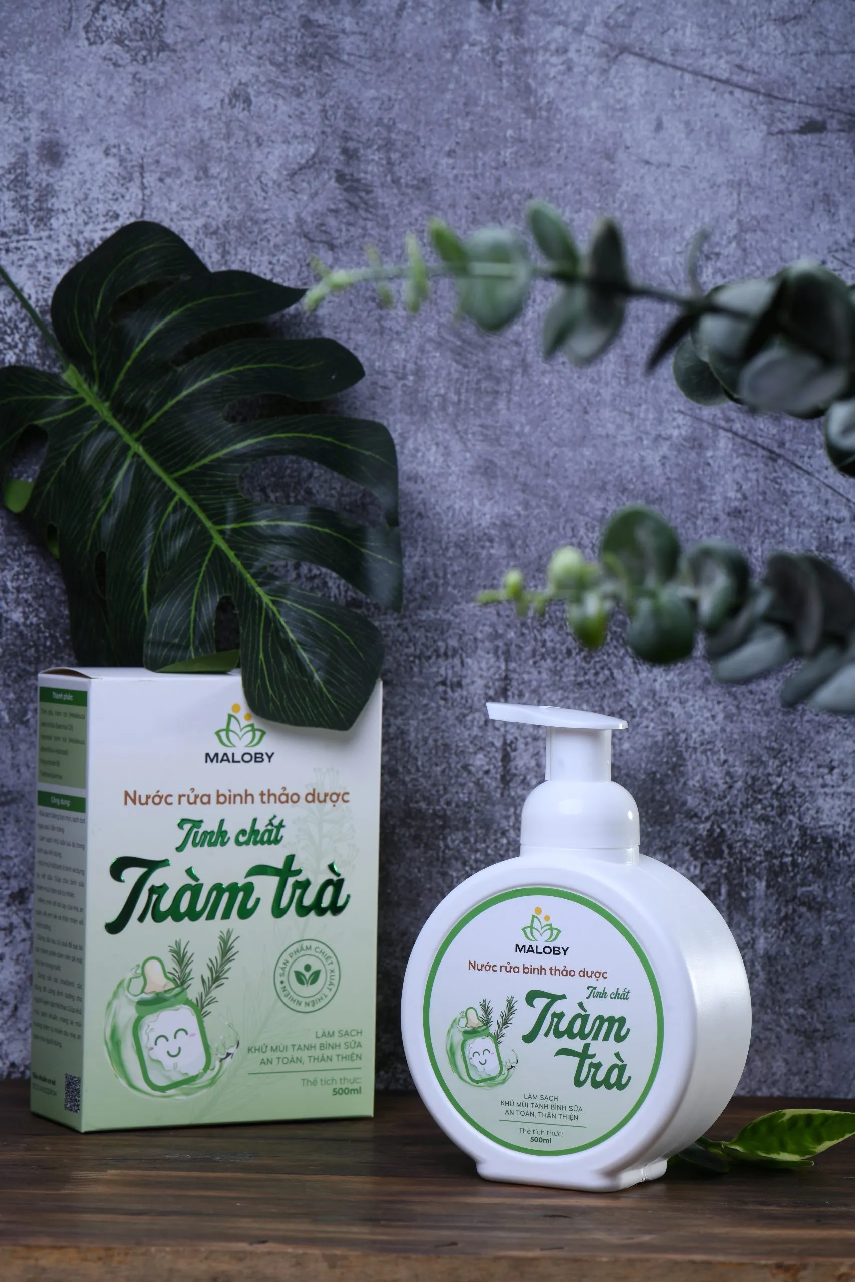 Nước Rửa Bình Thảo Dược Cho Bé Tinh Chất Tràm Trà Maloby được sản xuất với thành phần chính từ tinh dầu Tràm Trà thiên nhiên. 100% nguyên liệu Tràm Trà được Maloby chủ động trồng trọt và khai thác trên diện tích gần 50ha bằng phương pháp canh tác thân thiện với tự nhiên & bền vững.