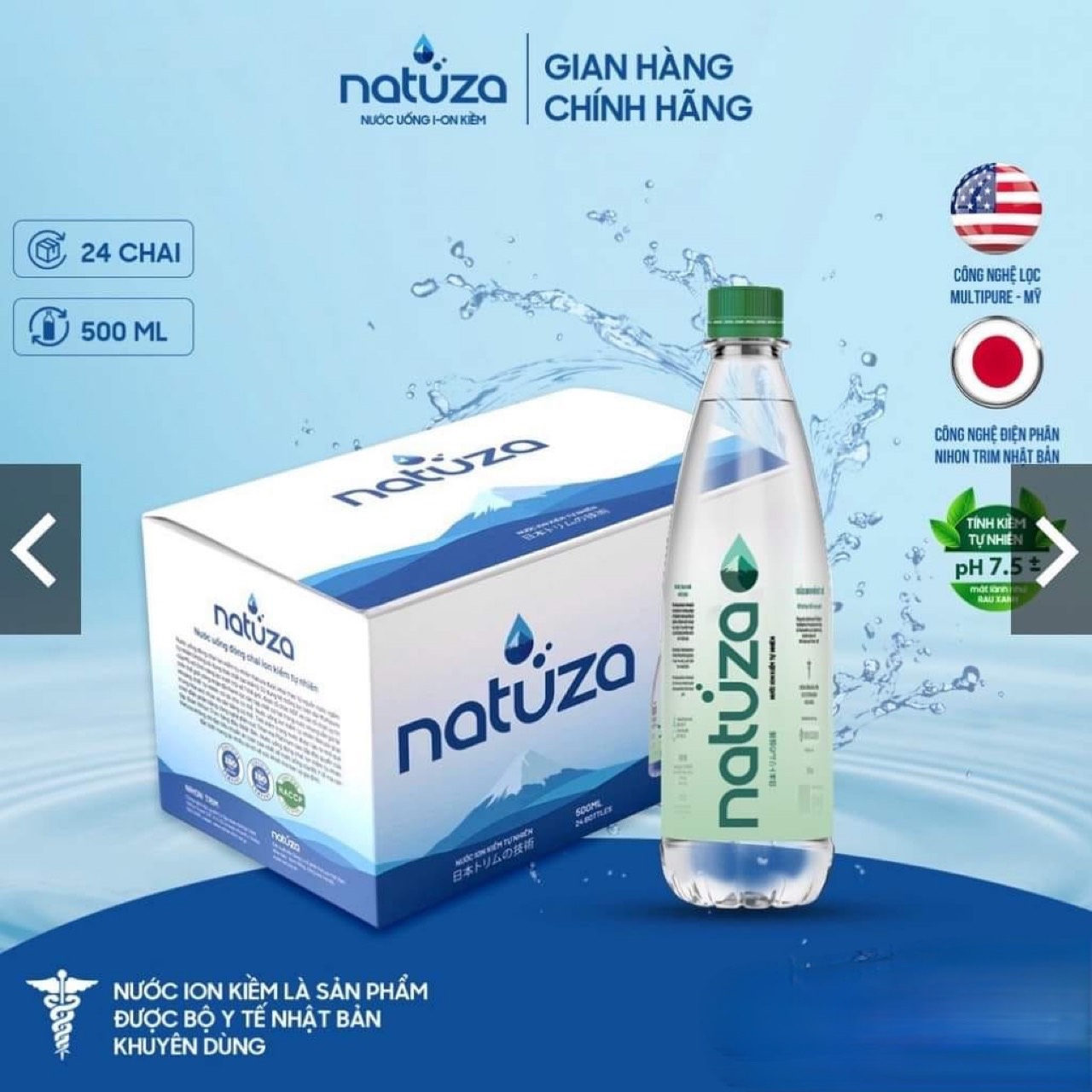 - Nước uống ion kiềm tự nhiên Natuza pH 7.5 "Khơi nguồn sức trẻ". Phù hợp với mọi lứa tuổi. - Độ pH lý tưởng từ 7.5 – 9.2 mát lành như rau xanh quả chín --> Giúp kiềm hóa tự nhiên, trung hòa lượng axit dư thừa, đưa cơ thể về trạng thái cân bằng lý tưởng.