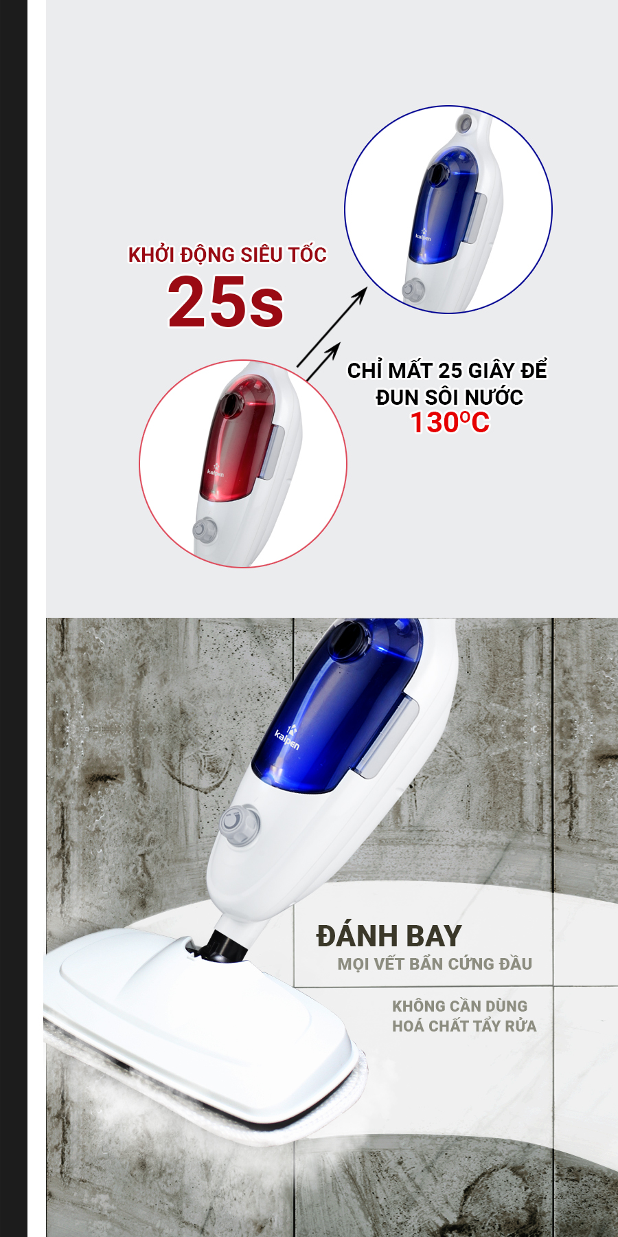 Giới thiệu sản phẩm Cây Lau Nhà Diệt Khuẩn Bằng Hơi Nước Nóng Siêu Nhiệt Kalpen SMK-3960