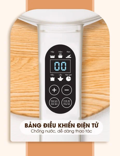 Nồi có 6 chế độ nhiệt có thể điều chỉnh bằng bảng điều khiển Tiếng Việt dạng phím bấm hiện đại, thuận tiện sử dụng cho mọi người, mọi nhà. Thiết kế tay cầm thon dài,có điểm tựa để đảo thức ăn, sử dụng chất liệu là nhựa cách nhiệt, mang đến sự thoải mái mỗi khi cần cầm nắm dịch chuyển.
