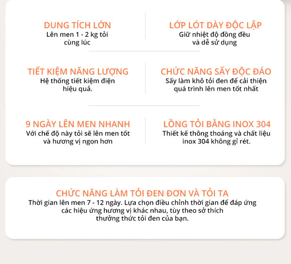 Lên men tỏi đen chỉ trong vòng 7 ngày và hoàn toàn tự động. Giải pháp đơn giản để có món dược liệu tỏi đen giá trị giàu dinh dưỡng, tốt cho sức khỏe nhưng chi phí lại thấp hơn nhiều so với việc mua tỏi đen bên ngoài.
