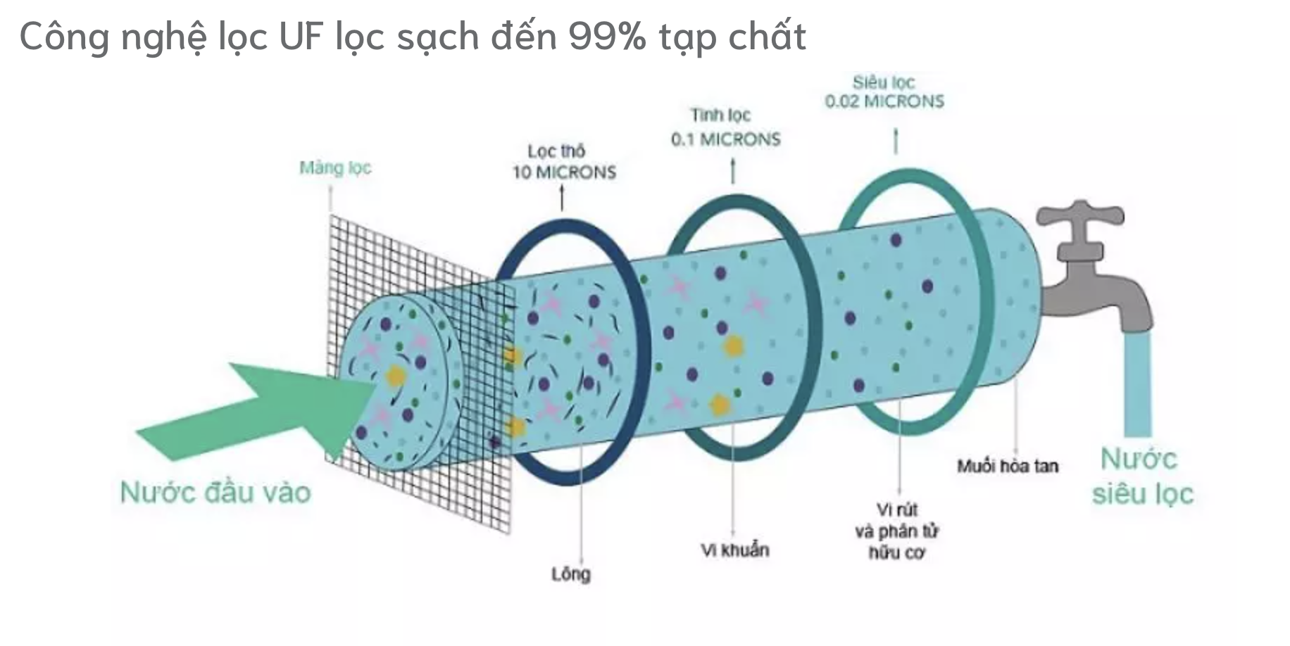 Công nghệ lọc UF lọc sạch đến 99% tạp chất