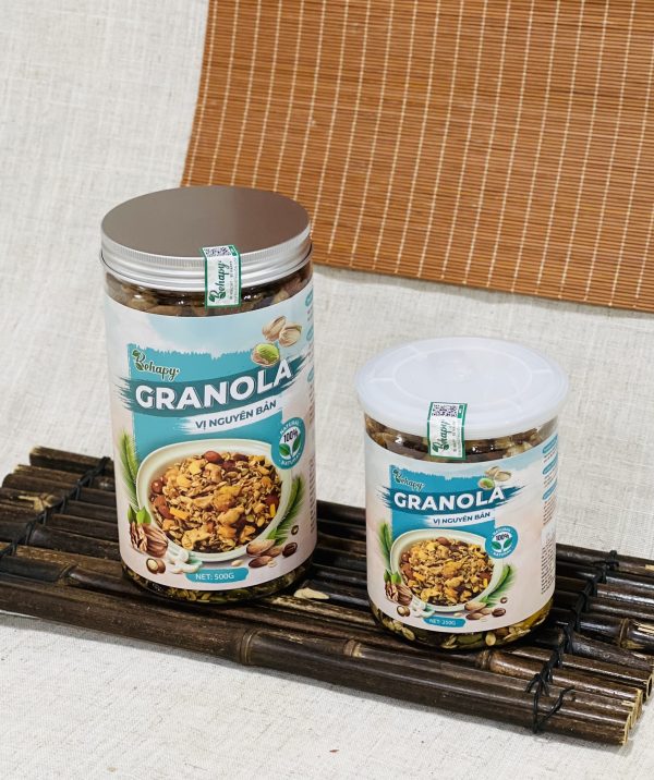 Granola 11 loại hạt : Hạt điều, hạnh nhân, óc chó, macca, bí xanh, bột matcha, yến mạch, dứa, xoài sấy dẻo, việt quất, nho, mật hoa dừa