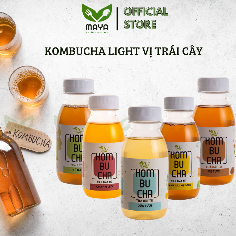 Thành phần Dòng trà Kombucha Ligh: 50% Kombucha nguyên chất kết hợp 50% nước hoa quả tươi, vị thanh mát, dịu nhẹ.