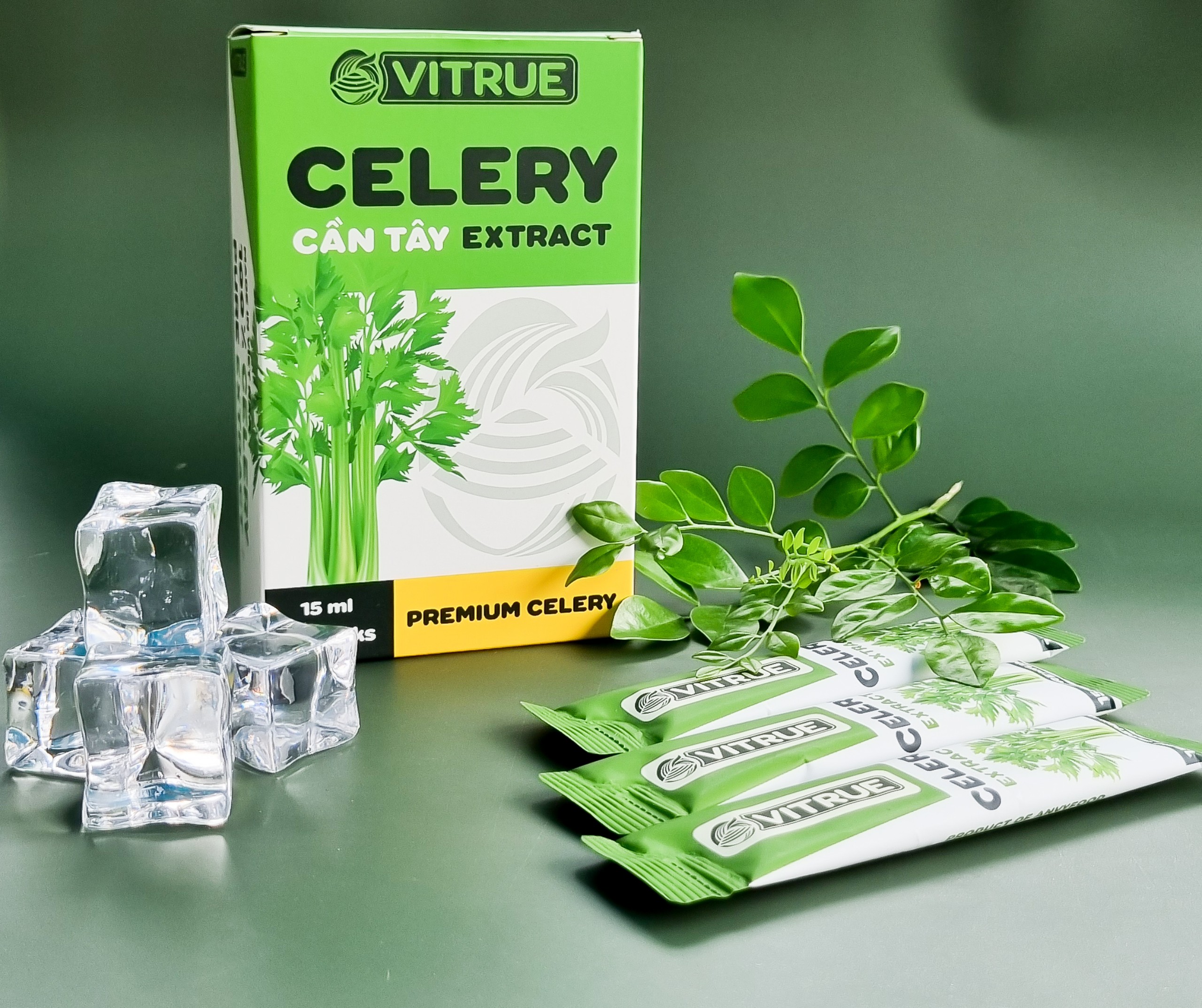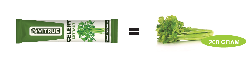 1 gói tinh chất cần tây Vitrue Celery chứa hoạt chất tương đương với 200 gam Cần tây tươi