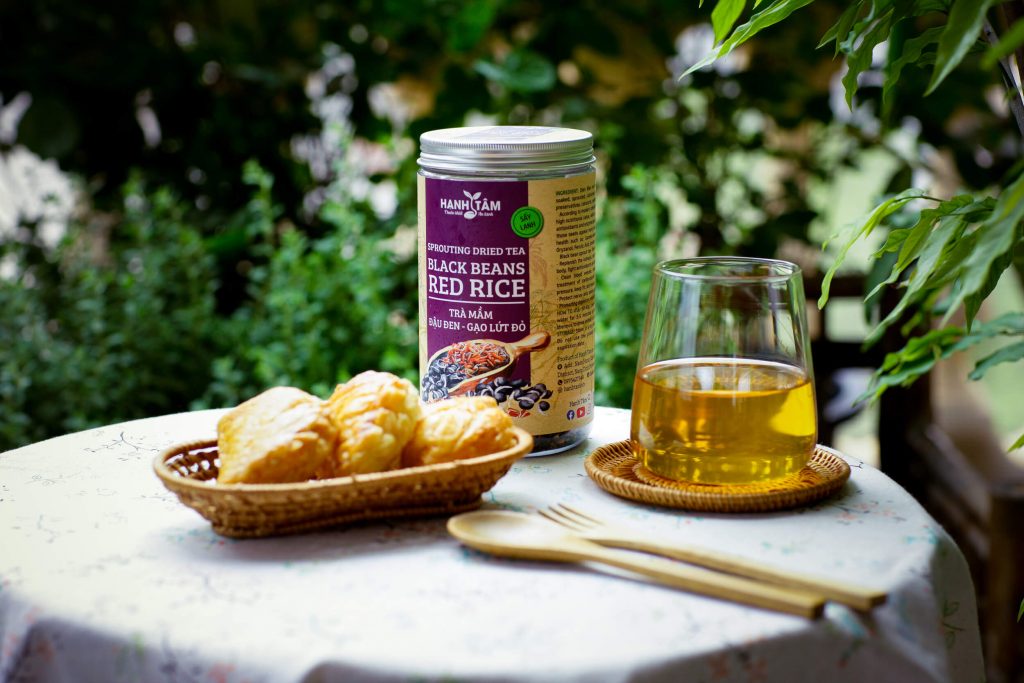 - 100% từ hạt lúa tẻ đỏ bản địa của Điện Biên trồng trên nương được nảy mầm, sấy lạnh, sát lật, sao vàng, hạ thổ.
