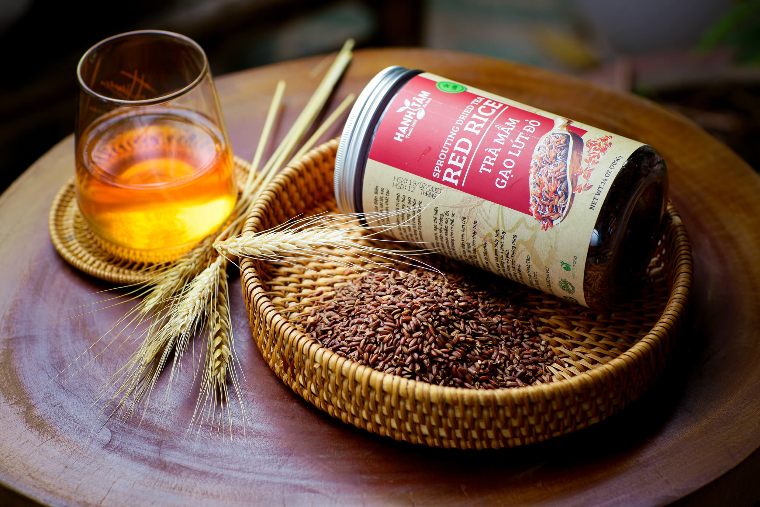 - 100% từ hạt lúa tẻ đỏ bản địa của Điện Biên trồng trên nương được nảy mầm, sấy lạnh, sát lật, sao vàng, hạ thổ.